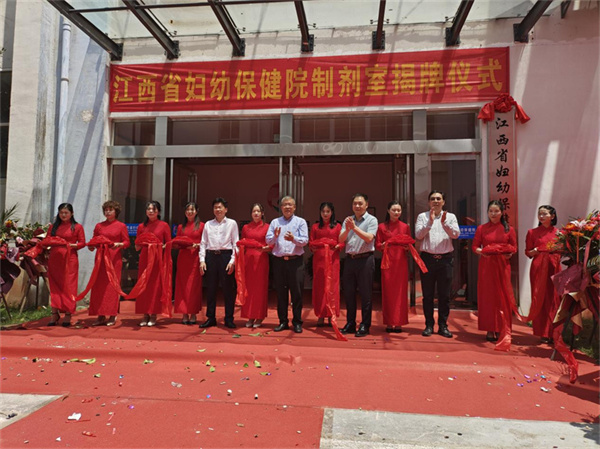隨后,在大家的熱烈掌聲下,李增明書記、趙曉明董事長等領(lǐng)導(dǎo)為江西省婦幼保健院制劑室揭牌,同時(shí)為制劑室開業(yè)慶典剪彩。