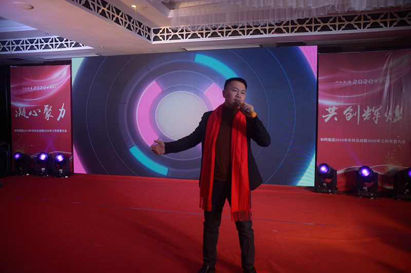 最后,和明集團(tuán)董事長(zhǎng)趙曉明作了熱情洋溢的講話。他說2019年是極不平凡的一年,在政府各相關(guān)部門的鼎力幫助下,在全國(guó)各合作單位的大力支持下,通過全體員工的共同努力,取得了驕人的業(yè)績(jī) 。展望2020年,我們信心滿懷,開拓進(jìn)取。我們要只爭(zhēng)朝夕,不負(fù)韶華,創(chuàng)造和明集團(tuán)更加美好的明天。
